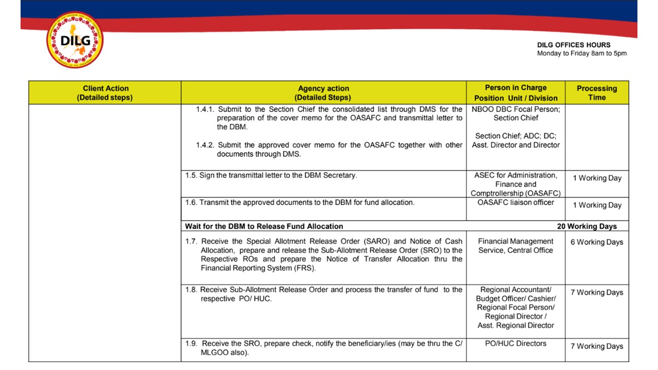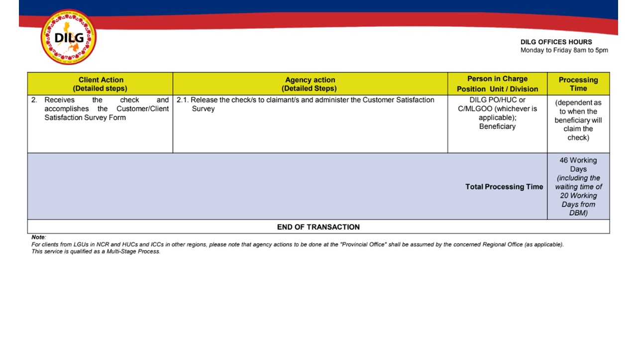 - Type of Transaction: G2C Government to Citizens; G2G – Government to Government (DILG to DBM)
