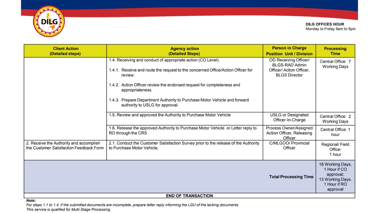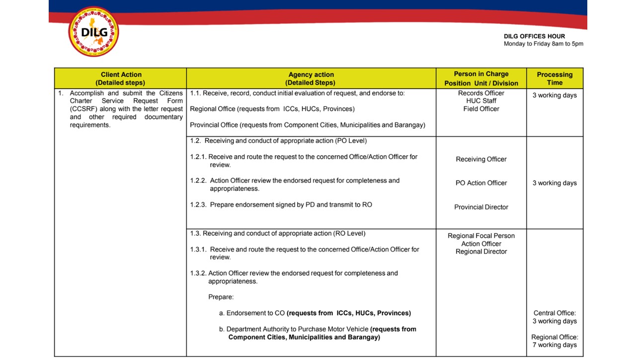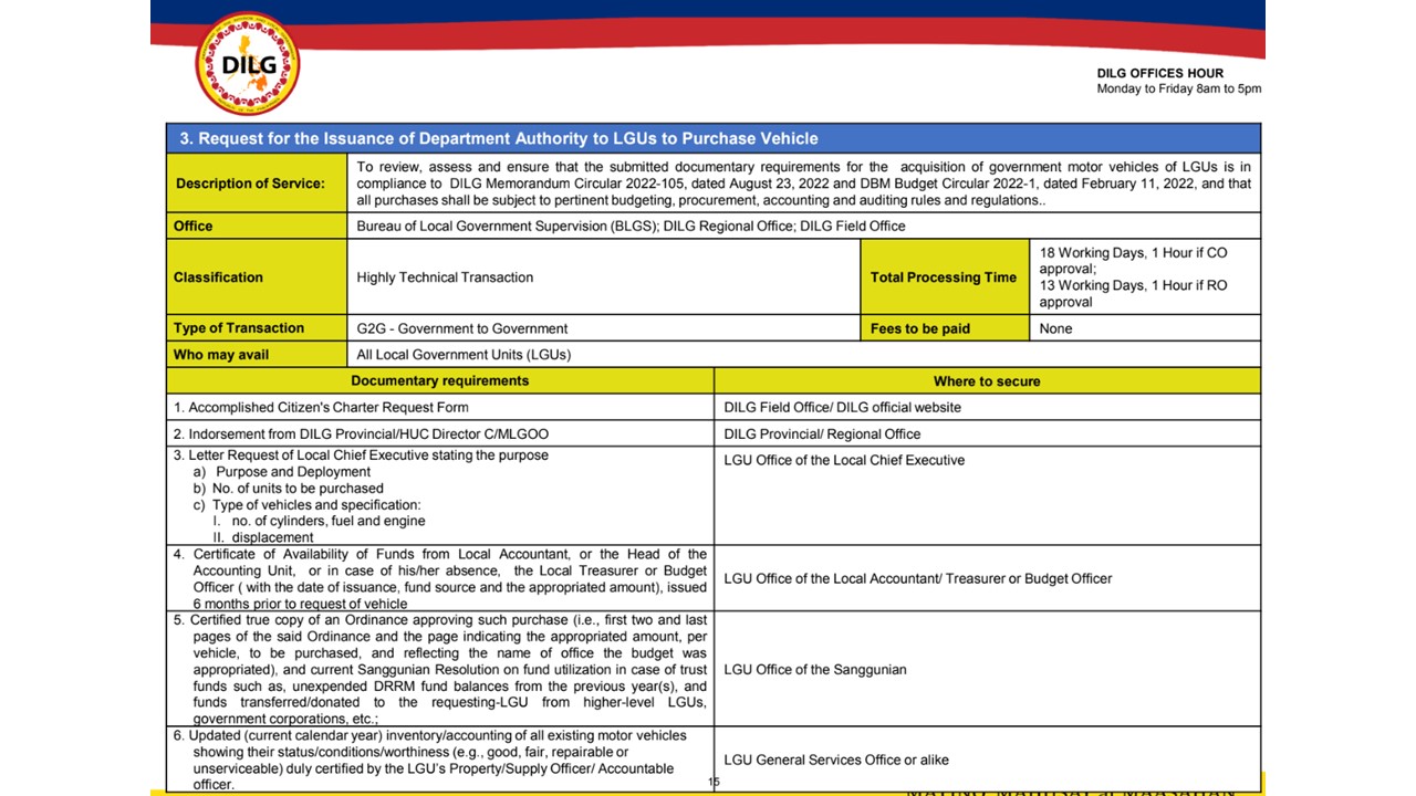 Request for Department Authority to LGUs to Purchase Motor Vehicle